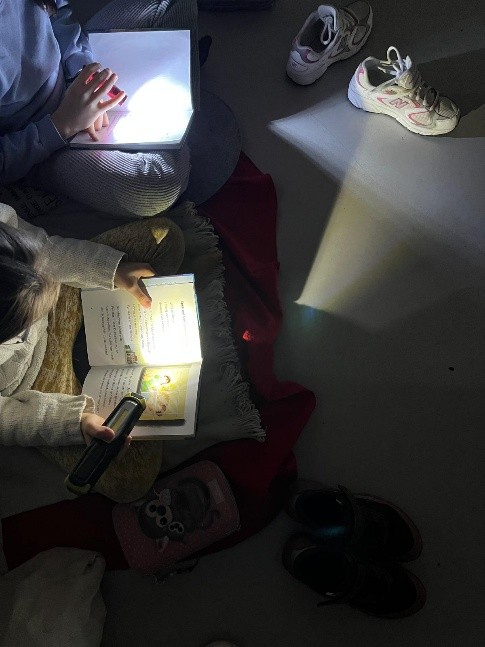 Das vielfältige Angebot reichte von Leserätseln, Escape Rooms und Lesekrimis über „Lesen im Dunkeln“ und Lesespaziergänge bis hin zum Basteln von Lesezeichen. Darüber hinaus wurde interaktiv vorgelesen, und mit viel Kreativität entstanden eigene Bilderbücher.