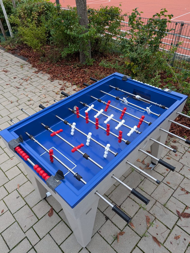 Die Kickertische sind extra robust gefertigt und somit für den Außeneinsatz auch bei Wind und Wetter geeignet. Seither werden sie fast pausenlos genutzt: von der ersten bis zur letzten Pause, bei kleinen Duellen oder spontan organisierten Turnieren.