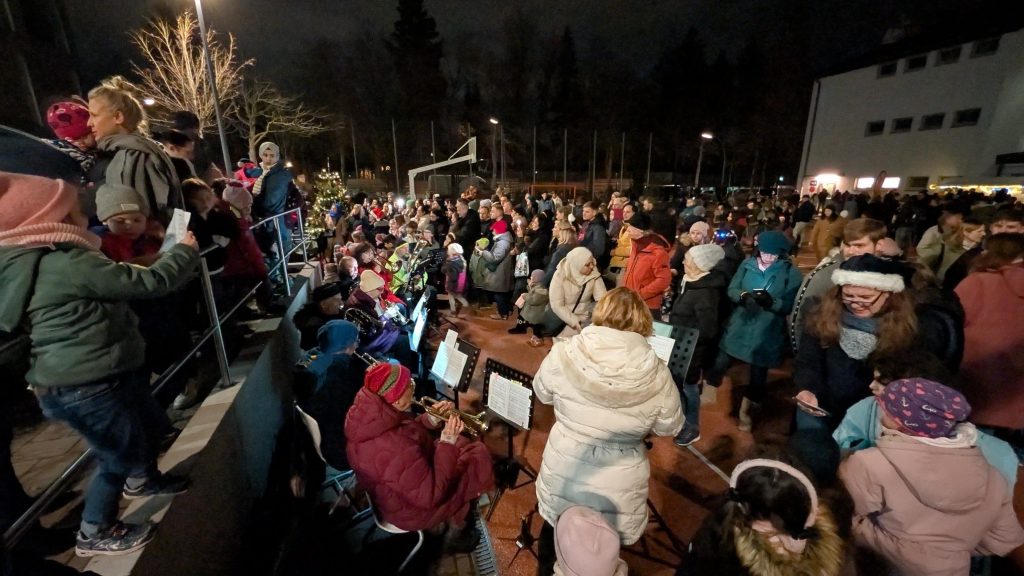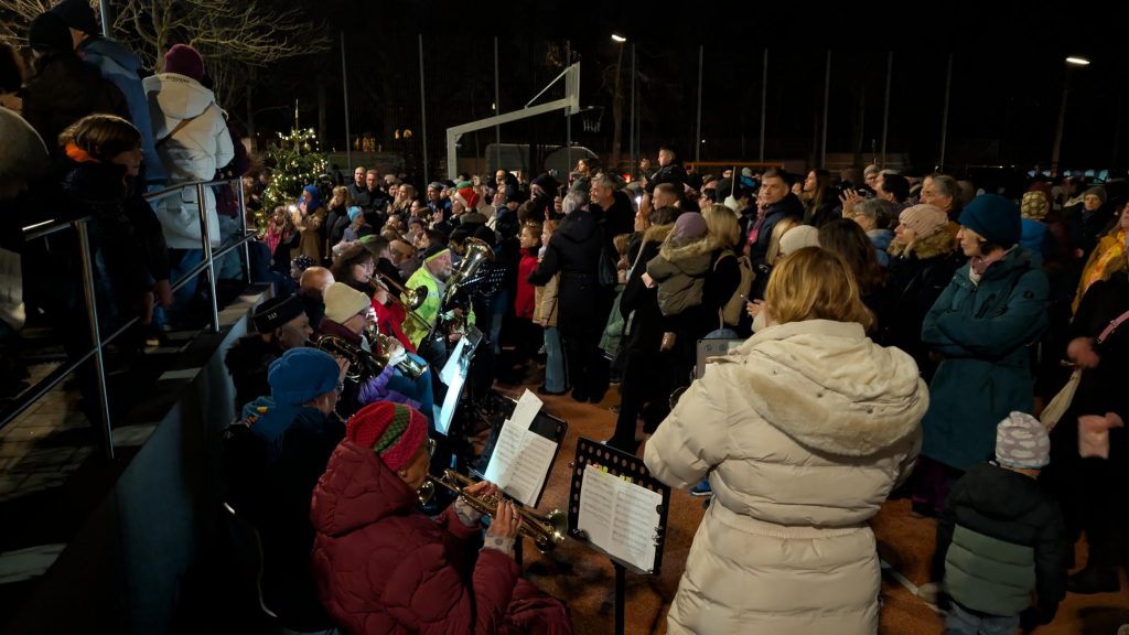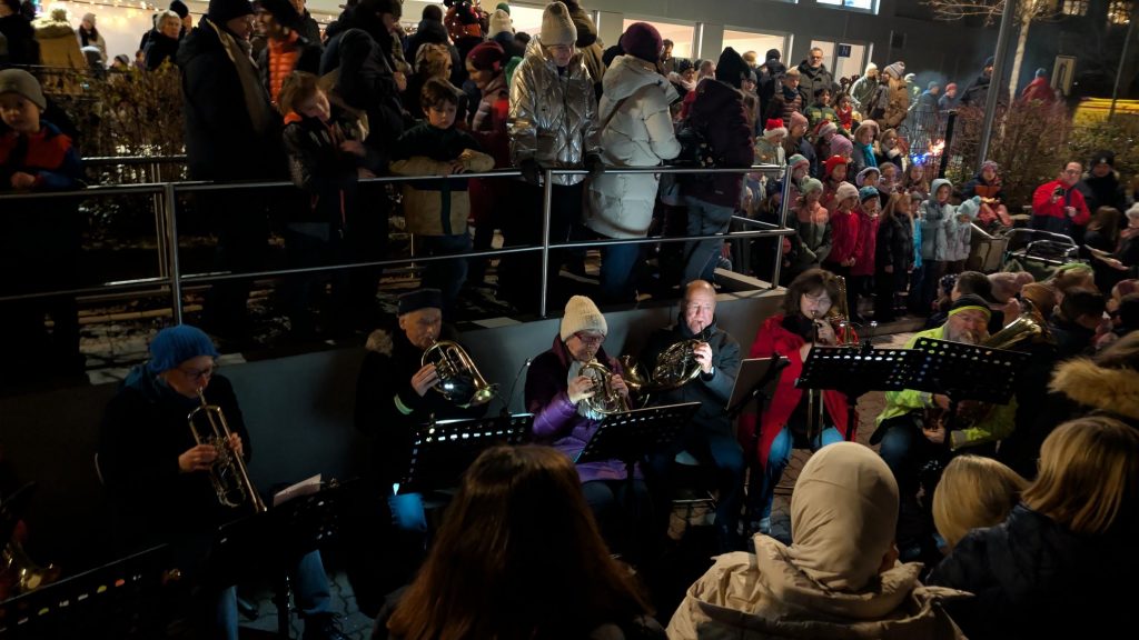 Ein musikalischer Höhepunkt war der Auftritt unseres Schulchors, der gemeinsam mit einem Posaunenchor bekannte Weihnachtslieder sang und spielte – viele Gäste stimmten mit ein.